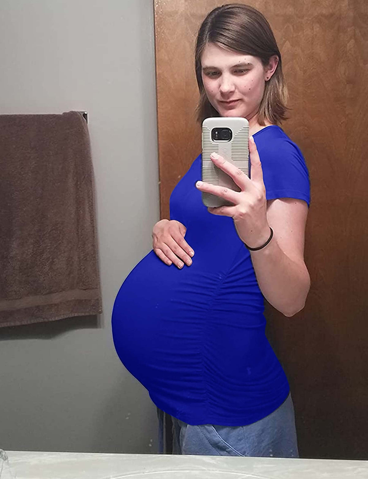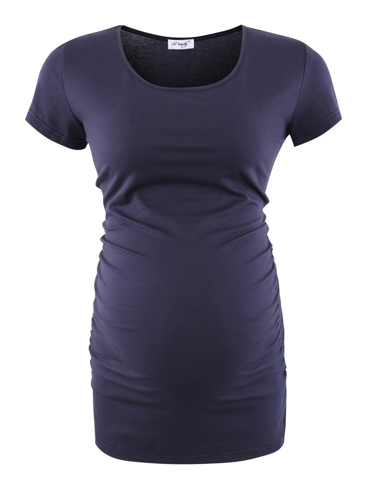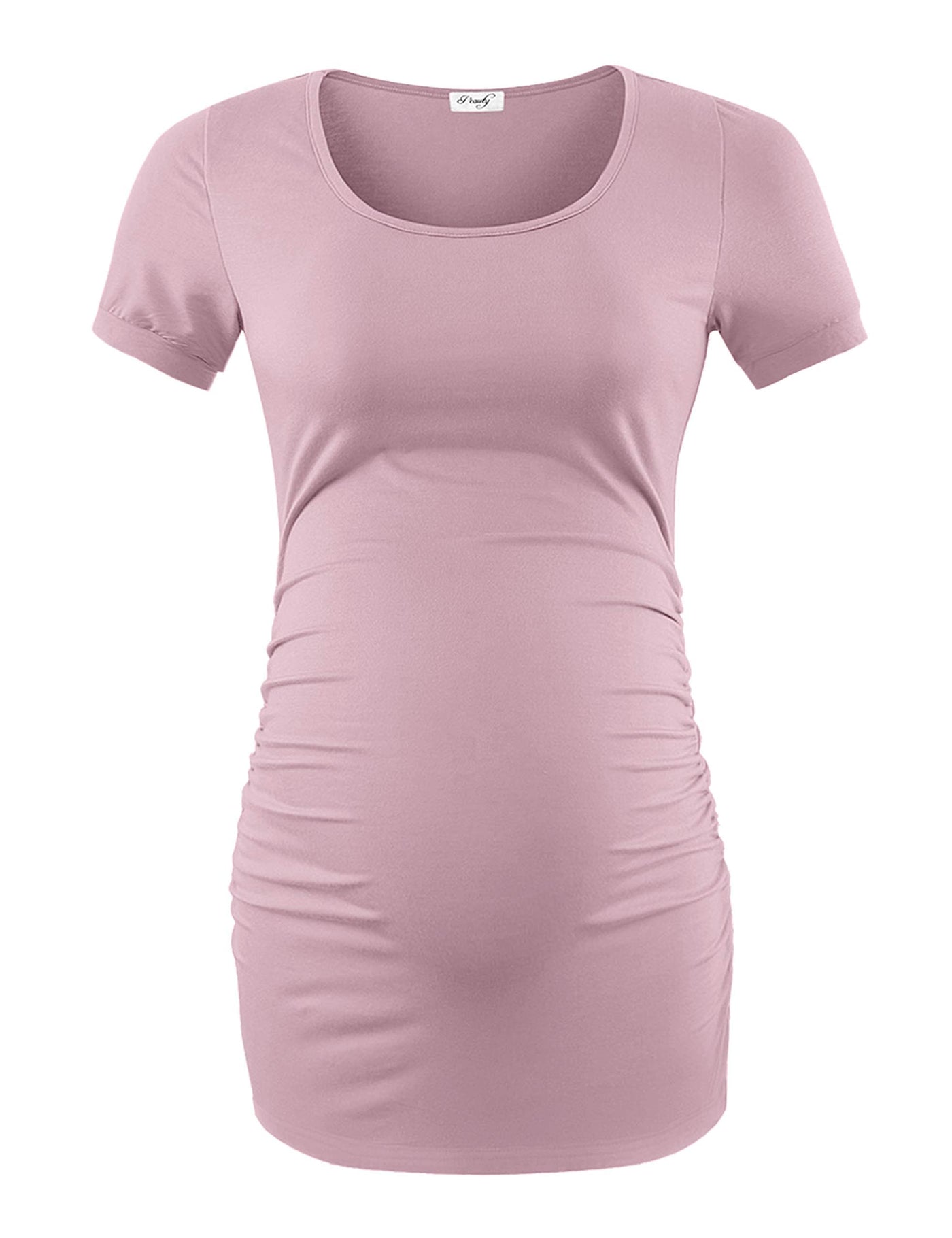 Peauty White Maternity Tops for Women Side Ruched T Shirts