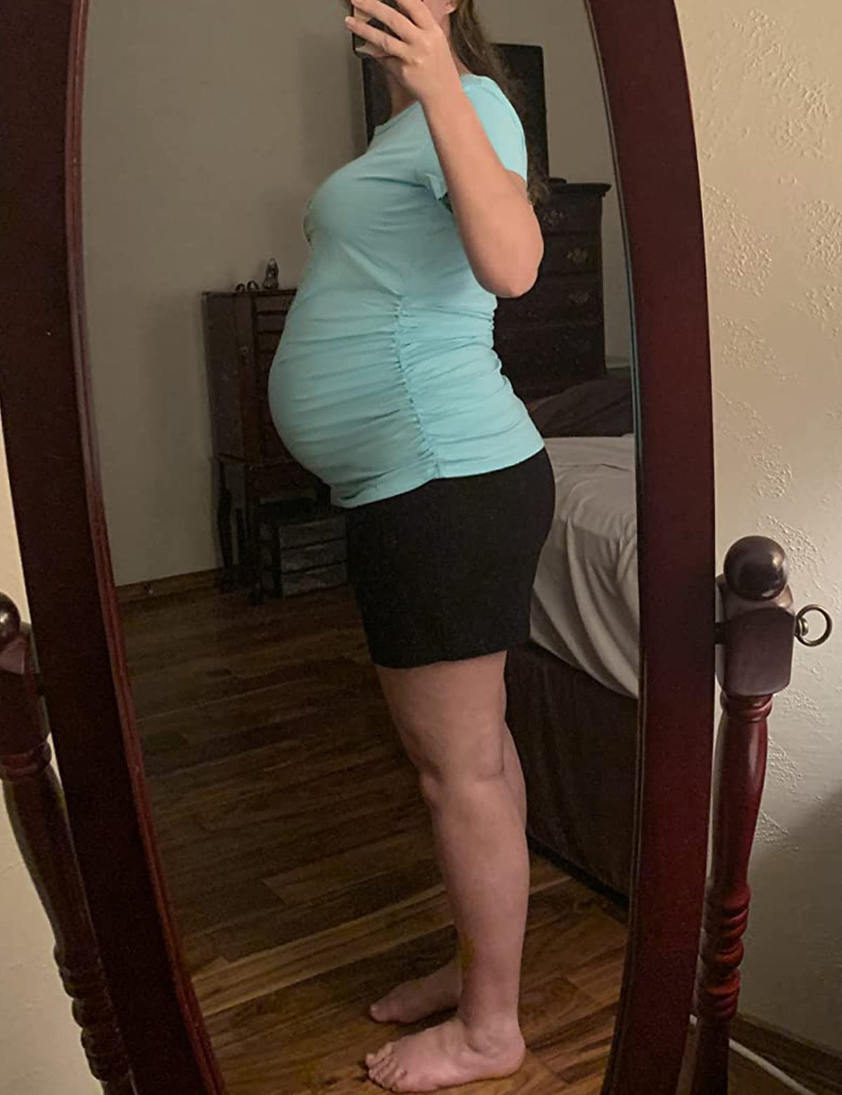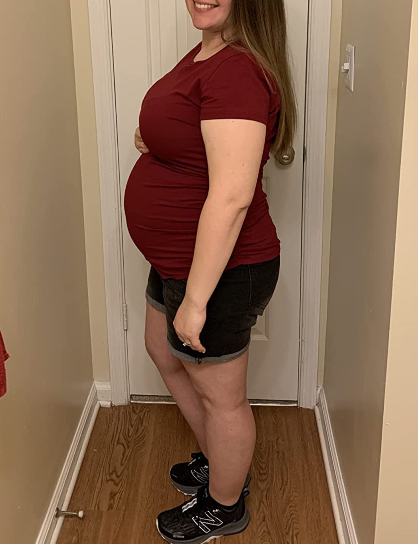 Classic maternity shirts: Long enough to cover your hips. Fits most of normal bras. maternity clothes/ maternity shirts/ maternity/ maternity...